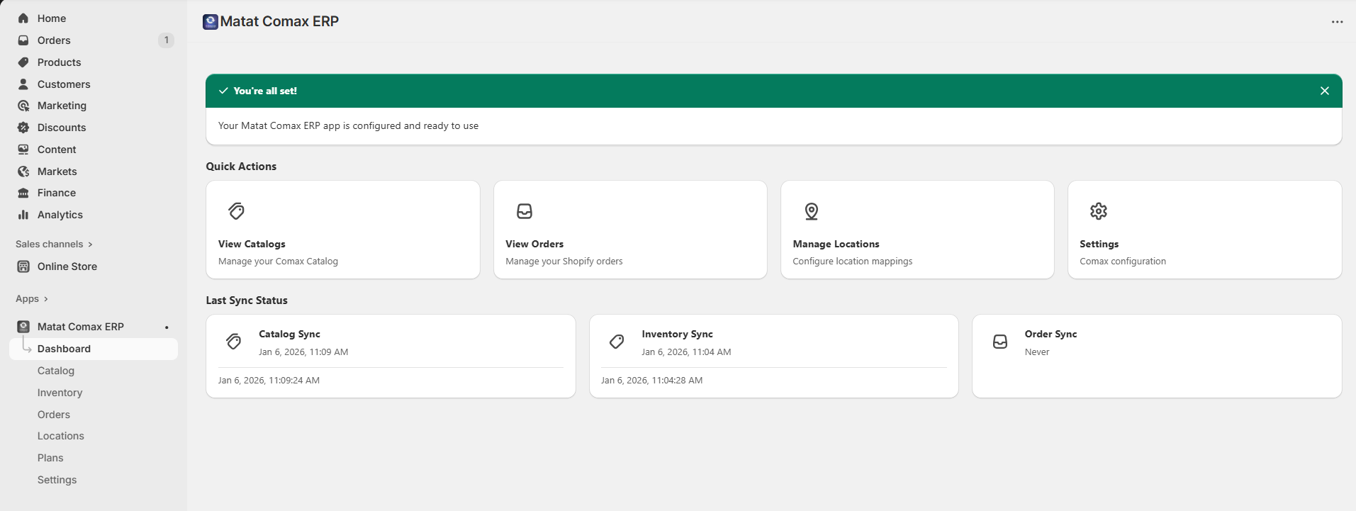 Note: Regularly syncing your inventory ensures your Shopify store always reflects accurate stock levels from Comax.