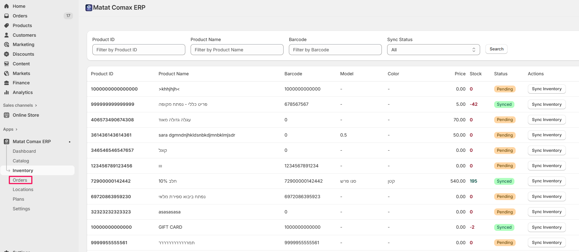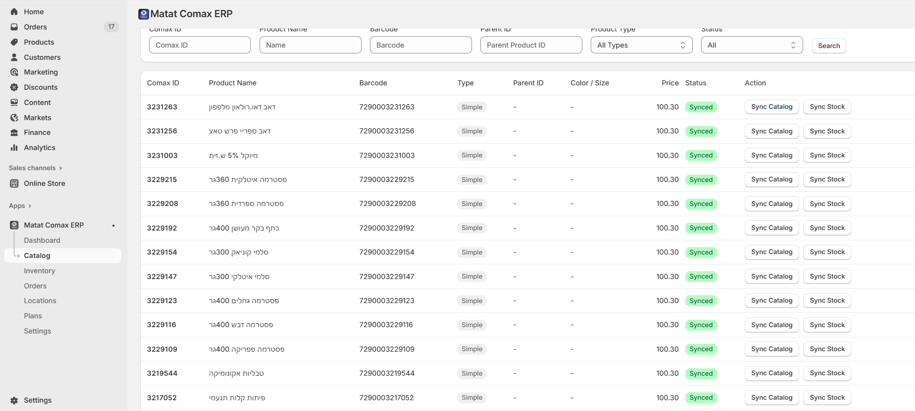 Once you have fully configured the Comax app, your Shopify store will be seamlessly connected to your Matat Comax ERP. Hence, you will be able to: