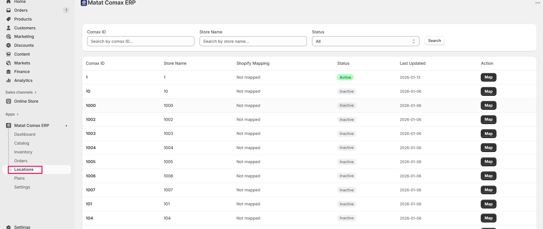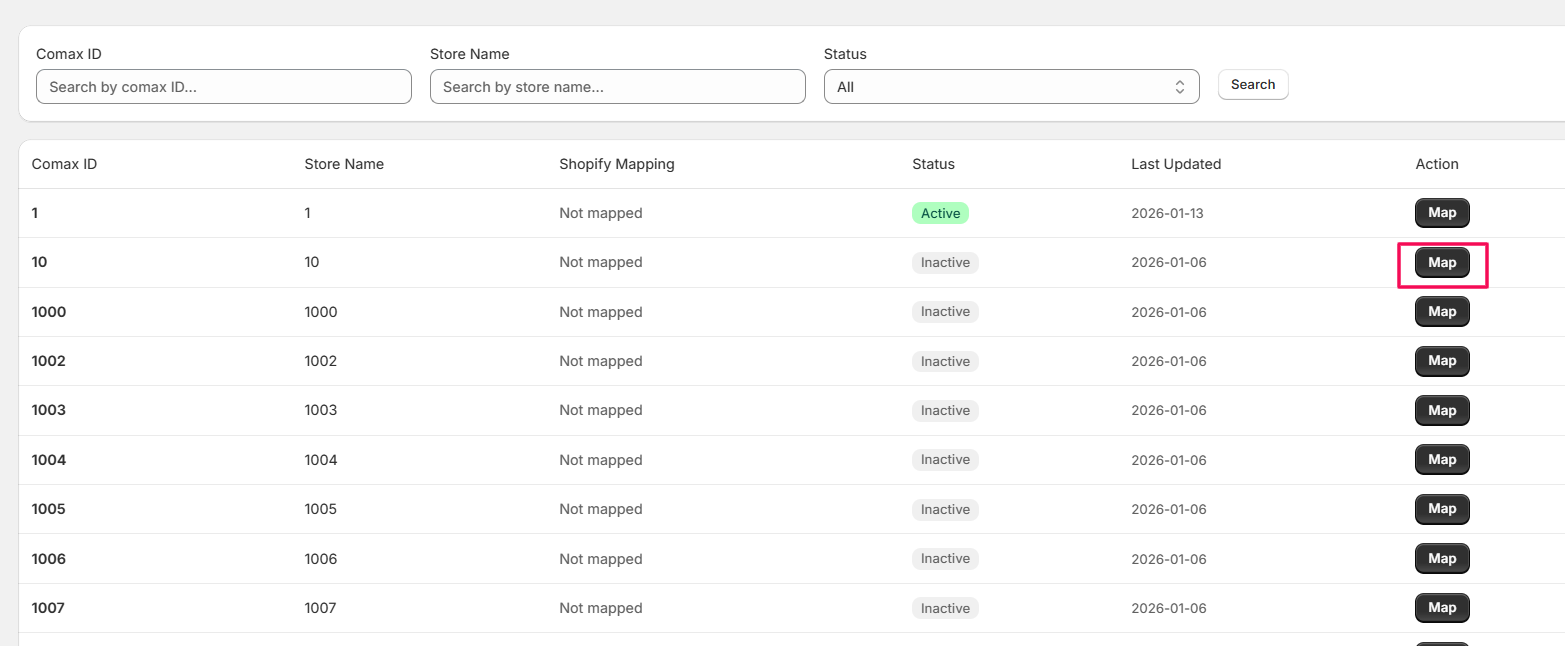 • Map Comax Location to Shopify