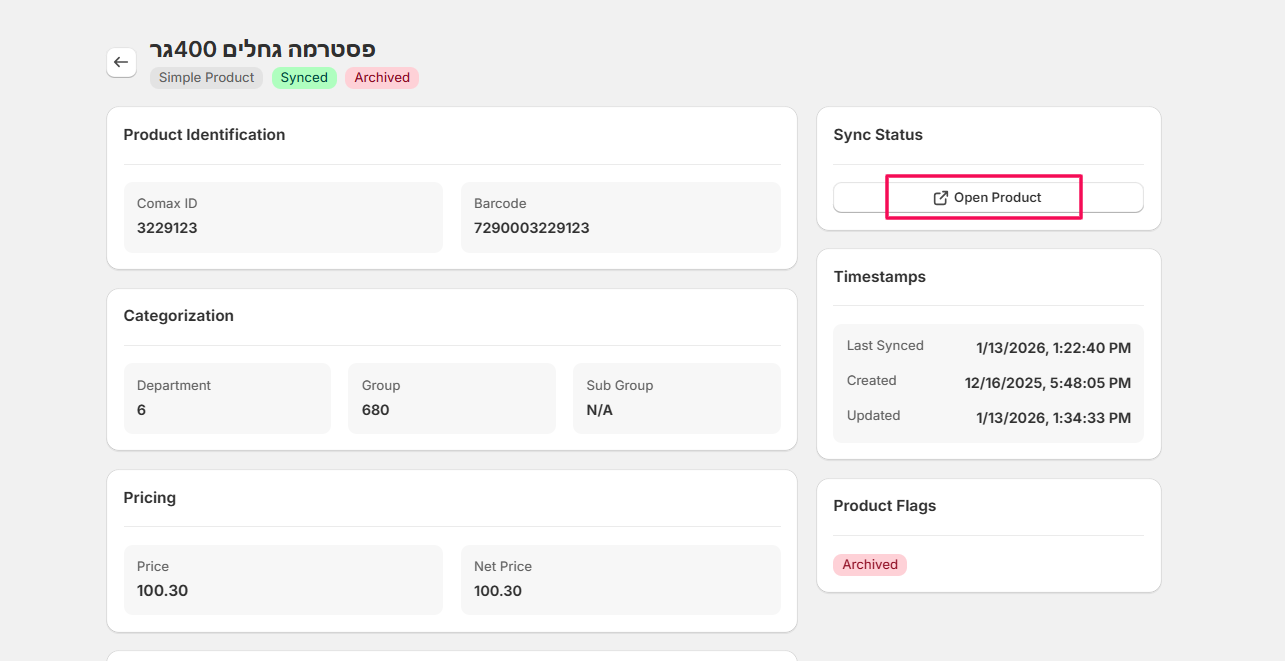 • Manage products from a single source: Product details, pricing, and availability are controlled from Comax and reflected in Shopify.